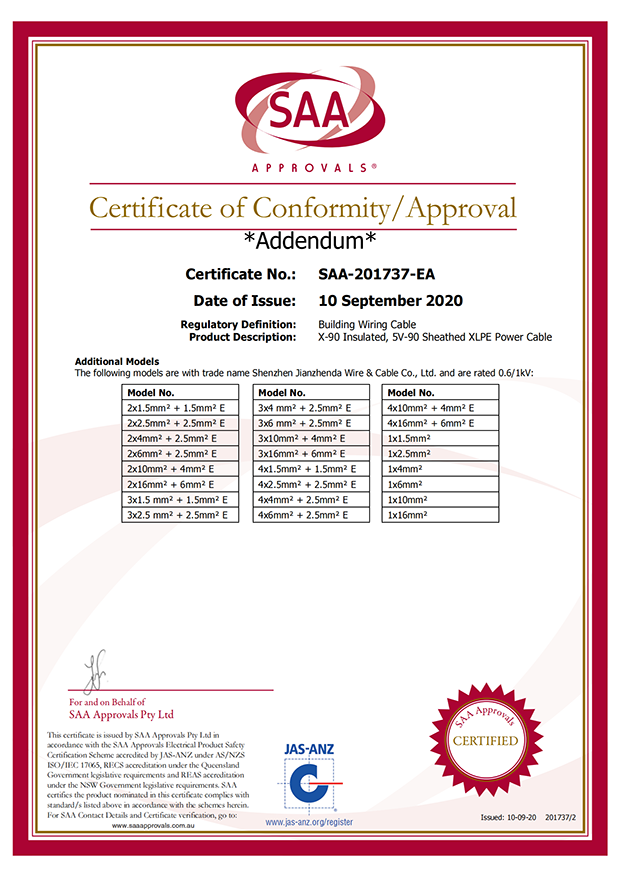 深圳建圳達(dá)電線電纜有限公司,成立于2000年,是一家電線電纜制造商,我們通過了世界各地不同市場的多數(shù)認(rèn)證,如:CCC、RoHS、CB、SAA、TUV、VDE、PSE、BPS、UL、CSA。我們根據(jù)定制產(chǎn)品不斷更新新的認(rèn)證。經(jīng)過數(shù)十年的發(fā)展,我們與來自世界各地的客戶建立了長期的合作關(guān)系。我們曾經(jīng)是菲律賓機(jī)場,,柬埔寨的電力站,美國的醫(yī)院,工廠,埃塞俄比亞的水電站項(xiàng)目。我們是一家值得信賴的電線供應(yīng)商。